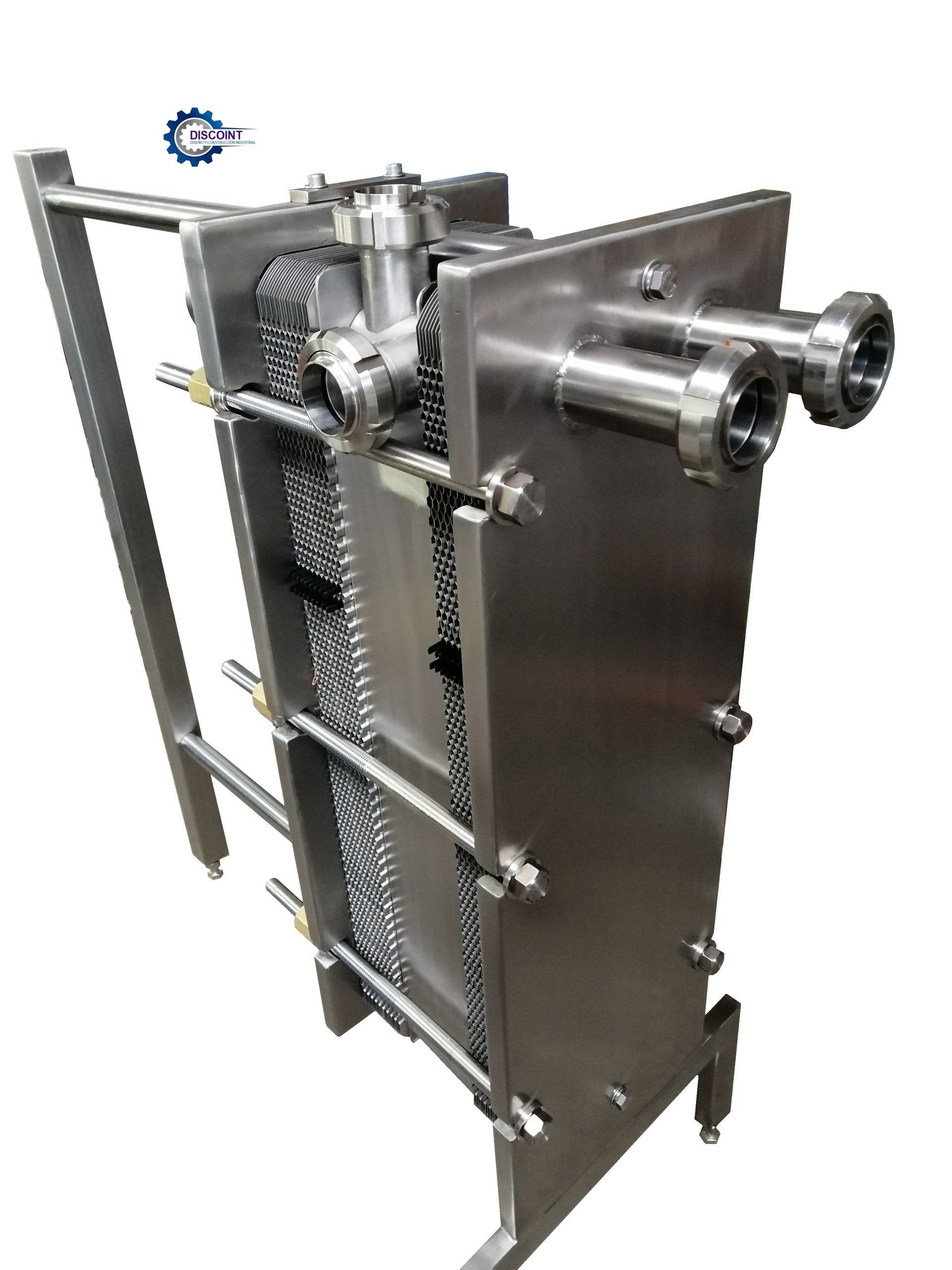 Este intercambiador a placas esta diseñado para trabajos de alto desempeño, con un alta eficiencia térmica, con este equipo se puede enfriar o calentar los productos de los diferente procesos, el tamaño del intercambiador se ajusta a las necesidades, requeridas en un proceso de producción, permitiendo incrementar el numero de placas si es necesario.